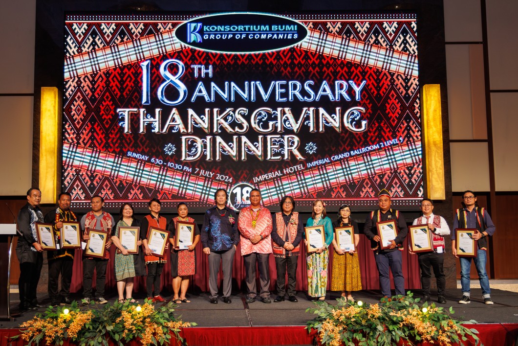 Konsortium Bumi Group held the 18th Anniversary with a Thanksgiving Dinner at Imperial Hotel Grandballroom 2 Level 5, Kuching on the night of 7th July 2024. It was attended by Sarawak Deputy Minister of Public Health, Housing, and Local Government, Datuk Dr Penguang Manggil.